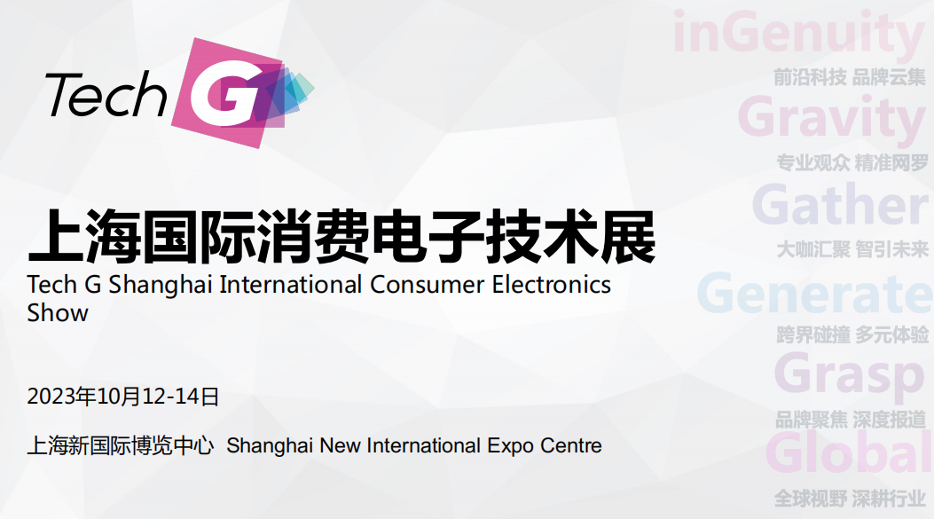 上海国际消费电子技术展(Tech G)是旨在打造面向亚太及全球市场的科技行业盛会,集中展示5G、人工智能、虚拟现实和汽车技术等革命性技术。 Tech G 将为品牌推广和新产品提供理想的平台和机会,着重实现企业品牌增值,帮助企业建立合作伙伴关系,助力科技技术的跨界应用,促进科技与实体经济的深度融合。 Tech G 2023 “上海国际消费电子技术展”将于10月12-14日上海新国际博览中心强势回归,智引未来!